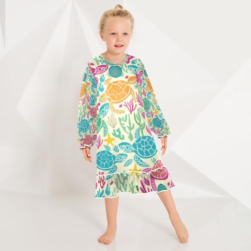 Bolaz Nightgowns Sleepwear Lightweight Nightdress Soft Pajamas Dress Yellow Pink Turtles for 3-10 Years 6