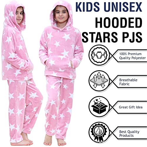 Girls Stars Print Fleece Extra Soft Loungewear Fashion Flannel Fleece Lounge Suit Hooded PJS Outfit Sets 4