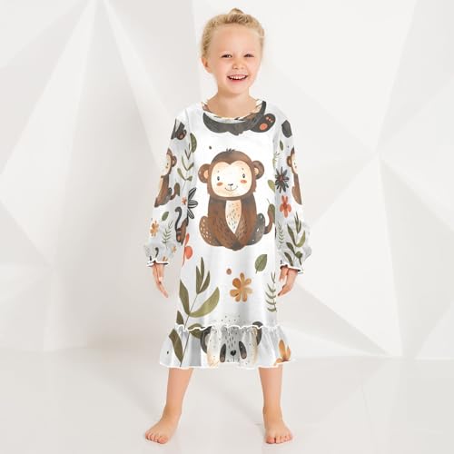 Bolaz Nightgowns Sleepwear Lightweight Nightdress Soft Pajamas Dress Panda Monkey for 3-10 Years 1
