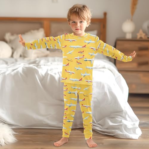 ALAZA Airplane Yellow Pajamas Long Sleeve Sleepwear 2-Piece Pajama Set 1