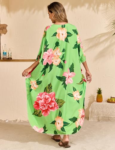 MAKABO Kaftan Dresses for Women, Summer Hawaii Swimsuit Cover Up, V Neck Caftan Beach Vacation Print Dress 4