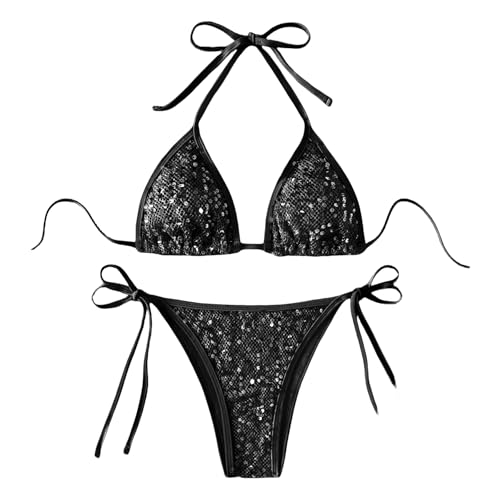 HOT ! Women's Shiny Sequins Bikini Sets Glitter Halter String Triangle Bikini Sets Two Piece Padded Swimsuit Bathing Suit for Women