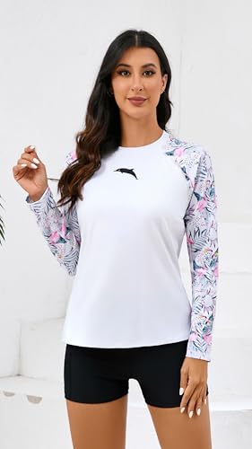 Halcurt Women's Built in Bra Rash Guard Long Sleeve Swimwear UPF 50 Two Piece Swim Shorts and Tops 6