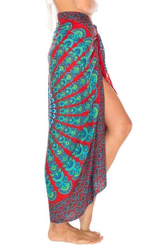 • CHIC BOHO MANDALA DESIGN: Available in multi-color like black, white, red, and blue, our sarong coverups for women feature eye-catching hand printed mandala peacock feather prints that channel a free-spirited, bohemian vibe. Pair it with your favorite bikini or tankini for an effortlessly stylish and picture-worthy look. Each swimsuit sarong, from pink sarong to blue sarong, showcases stunning, vibrant colors that stay true to photos and add flair to any beach escape