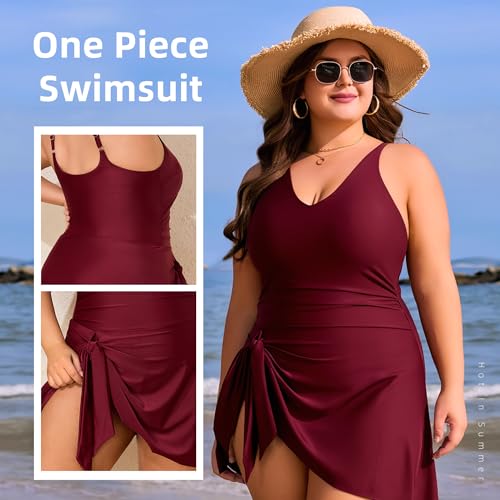 Women Plus Size Swim Dress High Stretch One Piece Swimsuit Tummy Control Bathing Suits 7