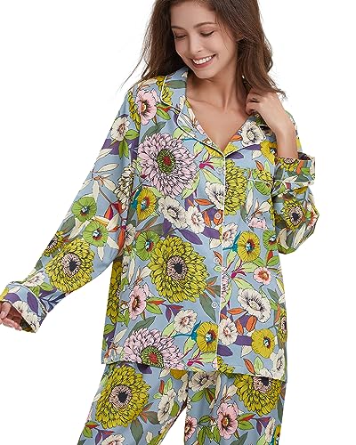 More information about Womens Silk Satin Pajamas Set Button Down 2 Piece Pjs Long Sleeve Oversized Sleepwear with Pockets