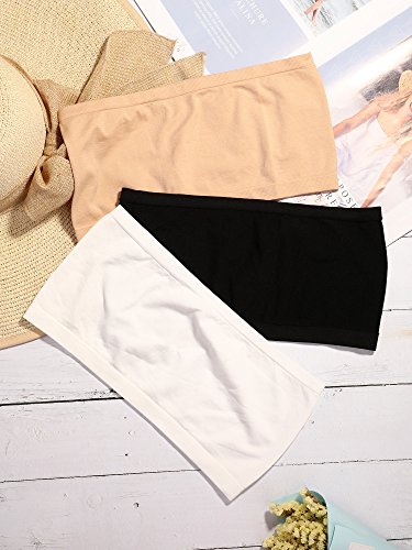 More information about Women's Strapless Bralette Seamless Bandeau Soft Stretchy Non-Padded Bandeau Tube Top Bra in Color, 3 Pieces