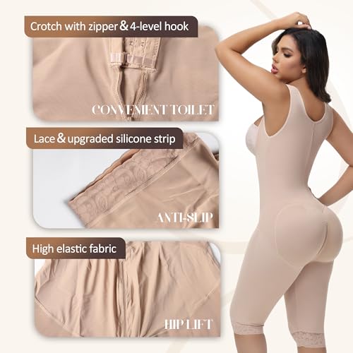 • KNEE-LENGTH FAJA: Designed to reach below the knee, this faja body shaper effectively smooths leg fat and reduces friction. The front is made of single-layer mesh fabric for breathability and comfort, prevents overheating, double-layer compression back for maximum shaping & support
