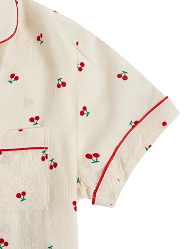 Verdusa Women's 2 Piece Pajama Sets Lightweight Fall Pajamas Cute Pj Set Button Shirt with Shorts Lounge Pjs 2
