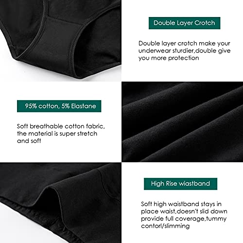 Annenmy Women's High Waist Cotton Underwear Soft Brief Panties Regular and Plus Size 4