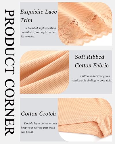 • Cotton underwear for women: Our womens underwear are crafted from 95% cotton and 5% elastane, ensuring a perfect blend of softness and stretch for all-day comfort. The RIBBED TEXTURE contours curves smoothly, ensuring a breathable snug fit that stays fresh and flattering all day.