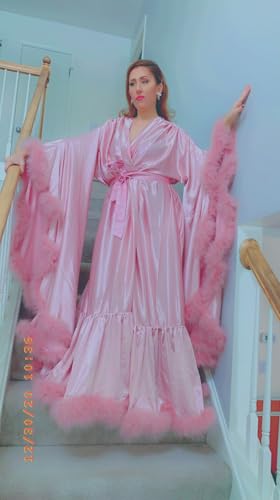 Changuan Feather Bridal Robe Silk Satin Robes Old Hollywood Long Nightgown Lingerie Bathrobe Sleepwear Maternity Photoshoot 6