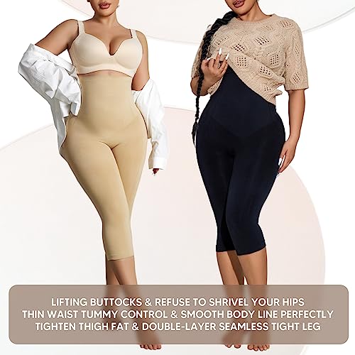 Shapewear Leggings for Women Tummy Control High Waisted Capri Body Shaper Butt Lift Thigh Slimmer 4