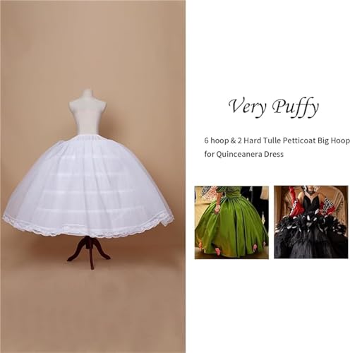 More information about Women Puffy Crinoline Petticoat 6 Hoop 2 Tulle Layers Skirt Slips Long Underskirt for Quinceanera Wedding Bridal Dress