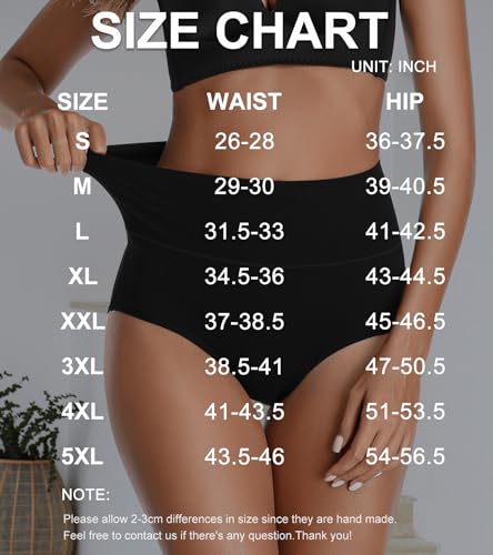 • HIGH WAISTED TUMMY CONTROL - Our women's high waisted underwear features a wide waistband that hugs your whole waist, providing a tummy control, smoothing out your tummy, and hiding your muffin. It won't roll down or mark your waist, naturally hugging your curves and keeping you comfortable