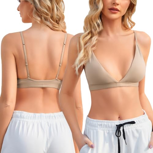 INIBUD Bralette for Women Removable Padded Bra Yoga Seamless V Neck Triangle Adjustable Straps Wireless 6