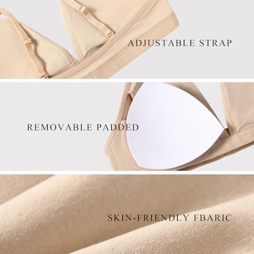 INIBUD Bralette for Women Removable Padded Bra Yoga Seamless V Neck Triangle Adjustable Straps Wireless 3