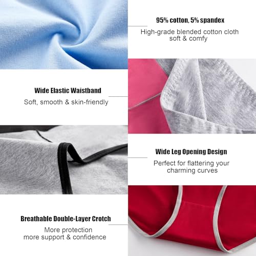 • SOFT &COMFY WOMENS BRIEFS :Plus size women's cotton panties, Women's underpants with wide breathable crotch for added protection, sweat wicking, the high-quality cotton underwear are not roll or gather and compress,No fading and distortion it allows you to be free and active all day.