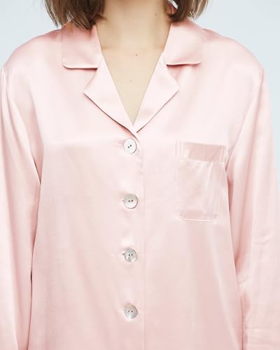 • FRENCH SEAM, SILK WRAPPED BUTTONS: Pamper yourself with our luxury silk pj set! Our classic top and bottom sleepwear set features luxury and cozy classic notched collar; Long sleeves with banded cuffs; One left chest pocket; Silk-wrapped buttons front closure; Elasticized waist with drawstring. Beautiful gift idea for women.