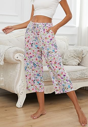 2 Pack Womens Pajama Pants Capri Sleep Lounge Pants Drawstring Pj Bottoms with Pockets 7