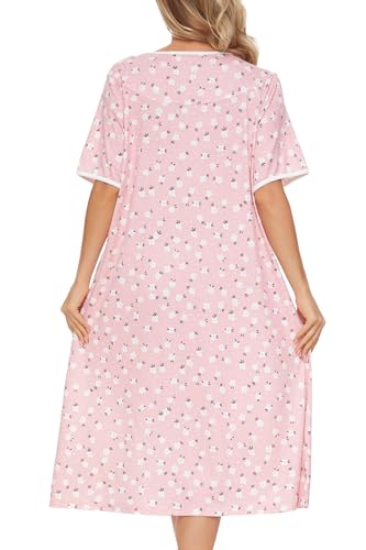 AVIIER Nightgows for Women Soft Cotton Night Shirts Short Sleeve Sleepwear with Pockets 5