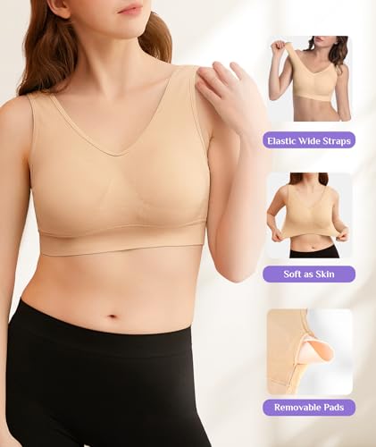 YADIFEN 3 Pack Womens Sports Bras,Wireless Comfortable Seamless Sleep Yoga Sports Bras for Women with Removable Pads 3