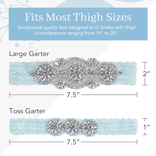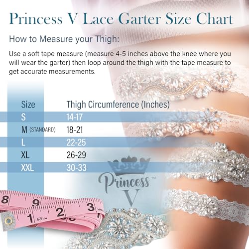 • High Quality Lace Fits Many Sizes: Exceptional quality elastic lace to fit different size brides thigh. Please see Thigh Size Chart: Small (S) is thigh circumference of 14-17, Medium (M) is 18-21, Large (L) is 22-25, Extra Large (XL) is 26-29, Extra Extra Large (XXL) is 30-33 inches. Please check your thigh size and order appropriate size for you.