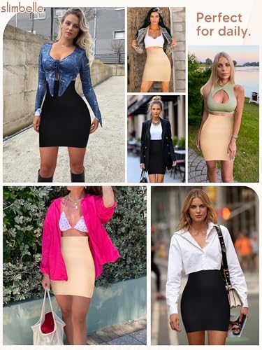 HOT ! SLIMBELLE Half Slip Shorts for Women Under Dresses Tummy Control Slip Dress With Built In Anti Chafing Boyshorts Panties