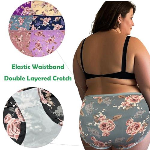 Women’s Plus Size Underwear Panties Briefs High Waist Rose Floral 6 Pack Plus Size Ladies Panties Briefs Underwear 4