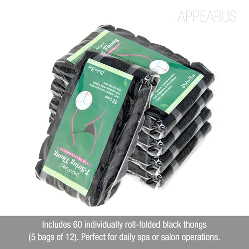 • BULK VALUE PACK: Includes 60 individually roll-folded black thongs (5 bags with 12 thongs each) perfect for busy salons, spas, and tanning studios