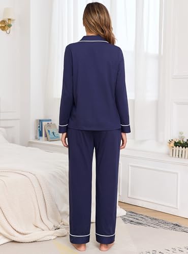 Veseacky 100% Cotton Pajamas for Women Set Long Sleeve Button Down Sleepwear Soft Pjs Lounge Sets with Pockets S-XXL 5