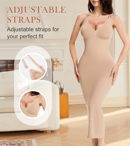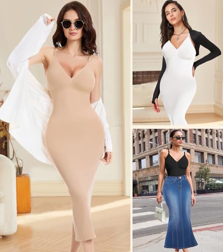 • 【Deep V Full Slip Shapewear for Women Under Dress】This shapewear slip dress is good as full slips for under dresses, smooth out side stomach rolls and tighten out your tummy, waist and back fat, give you all the right curves in all the right places, shapewear dress keeps everything intact while stay comfortable. If you want to have a loose fitting, you can choose a size up.