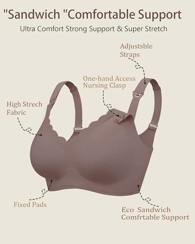 • Wire-free seamless support - This nursing bra uses an innovative "sandwich" support design to gently wrap and support your breasts, providing you with an ultra-comfortable experience and invisible under clothing.