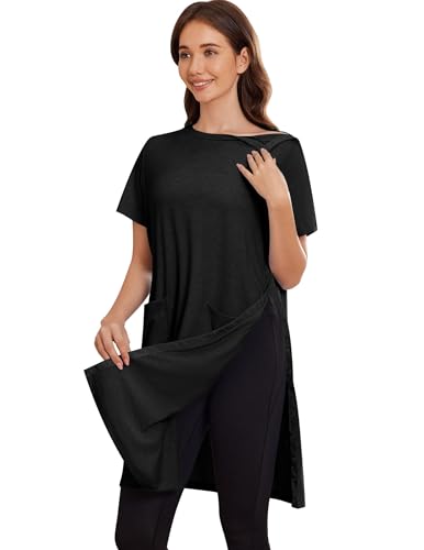 Deyeek Women's Post Shoulder Surgery dress Tear Away Short Sleeve Full Open Side Snap Adaptive Clothing with Pockets 1