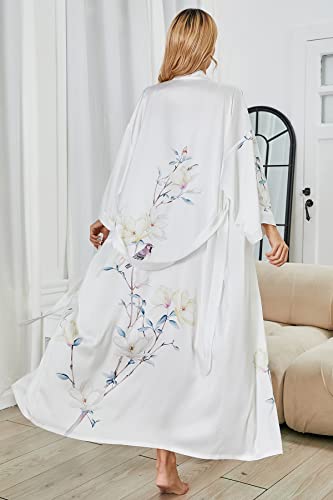 • Design: Women satin long kimono robe completed with professional french seam and decorated with exquisite flower. Kimono cover up is durable and will add extra understated luxury to your daily look.