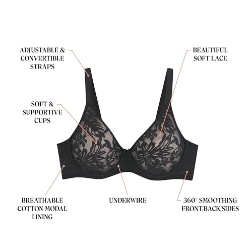 • BREATHABLE COMFORT - The bottom band, back, and sides are lined with a breathable cotton modal bra liner that helps keep you cool and dry. A comfortable underwire offers the support you want in a full-coverage bra.