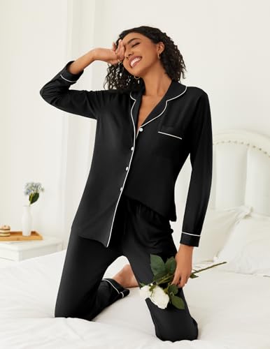 Ekouaer Womens Pajamas Set 2 Piece Button Down Pjs Soft Long Sleeve Top and Pants Sleepwear Set Lounge Sets 2