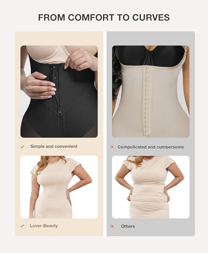 • HUMANIZED DESIGN: This fajas colombianas moldeadoras makes daily wear easy thanks to its front zipper and internal hook-and-eye system that ensures double security and a smooth silhouette. No awkward tugging or rolling. Plus, this faja shapewear for women features a discreet crotch zipper that offers convenience when using the bathroom — no need to remove the garment. Whether worn as a compression garment after liposuction or postpartum shapewear, this shapewear offers all-day comfort and ease