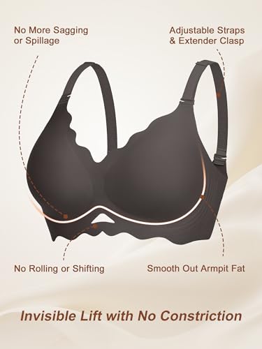 • Jelly Soft Support: This wireless bra features a W-shaped structure and side jelly strip support system, providing all-around bust support and effectively preventing sagging. It eliminates underwires for cloud-like comfort and a natural lift, making it the perfect t-shirt bra for all-day wear.