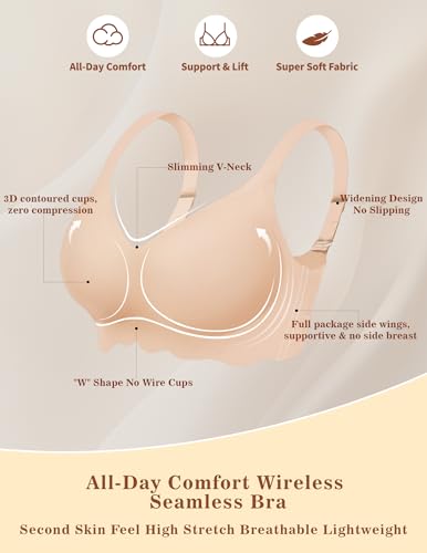 • 【Buttery Soft Seamless Fabric】Crafted from a luxurious 55% nylon + 45% spandex blend with 4-way stretch, these bras feel weightless and smooth against the skin. The seamless construction eliminates irritation, rolling, or digging, adapting to your curves for all-day comfort. Lightweight yet supportive, this fabric acts like a second skin, perfect for sensitive skin and seamless layering under any outfit.