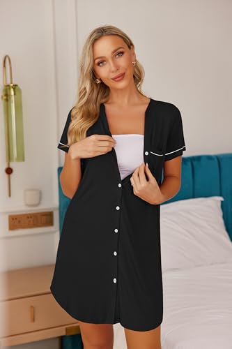 Ekouaer Nightgowns for Women Button Down Night Gowns Short Sleeve Sleep Shirt V Neck Nightshirt Soft Sleepwear Pajams Dress 1