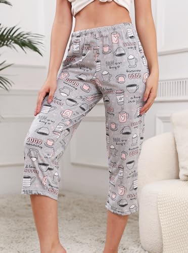 PNAEONG Women's Capri Pajama Pants Lounge Causal Bottoms Fun Print Sleep Pants 6