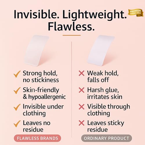 • ✅ INVISIBLE & FABRIC-FRIENDLY Ultra-thin and transparent, Flawless Tape blends seamlessly under clothes with no bumps, lines, or awkward bunching—even under delicate fabrics.