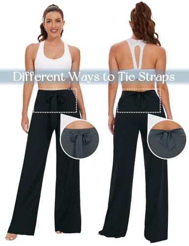 • [Stylish Design]: Comfy pants women are designed with flowy tie knot, wide leg style and stretchy high waist which provides comfortable coverage and adjustable fit. The adjustable knot in the front creating a chic look for these summer pants. Two outside pockets can be put for cellphone or any essentials.