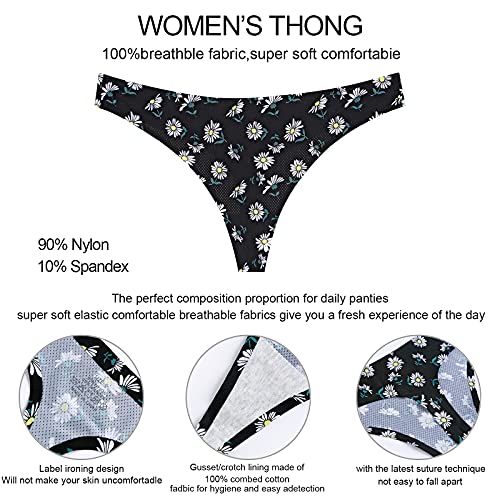 • SEAMLESS THONG FOR WOMEN: Thongs design with carefully laser cut sides,no visible panty lines or bunching. The elastic quick-dry fabrics,it will not make you feel tight and foreign objects,stay in shape and soft after wash. Thong underwear Perfect for all clothes to meet your requirements for all kinds of clothes,show your slim body also bring a touch of flavor to the daily life,which comfy enough to be your everyday favorite