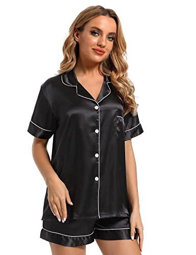 • CASUAL & ELEGANT: The short sleeve sleepwear with elegant, stylish design and skin-friendly fabric is an ideal button down pajamas women for wearing at home and for daily casual wear, sleep, slumber parties, bridesmaid pajamas, girls' day, living room, bedroom, hotel, vacation, and travel. The satin pajamas women are also a great gift for your wife, girlfriend, mother, sister, and friend on birthdays, New Year's, Valentine's Day, Christmas, wedding party gifts, honeymoons other anniversaries.