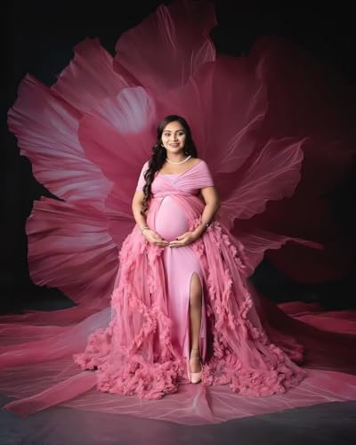 More information about Tulle Maternity Dresses for Photoshoot Puffy Ruffles Bathgown Sheer Baby Shower Pregnancy Gowns
