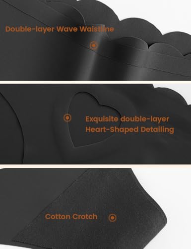 • [ Heart Cutout Back with Wave Waist Detail ] Designed with a flirty heart-shaped cutout and wave-inspired waistband, our no show underwear thong bikini adds just the right amount of charm and femininity — even if you're the only one who knows it’s there.