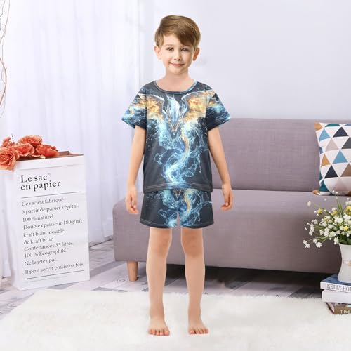 ALAZA Dragon Fantasy Blue Pajamas Set Short Sleeve Cotton Sleepwear Summer Pjs 2 Piece 5-14Y 1
