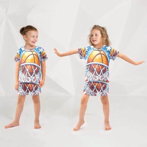 ALAZA Cartoon Basketball Star Red Blue Pajamas Set Short Sleeve Cotton Sleepwear Summer Pjs 2 Piece 5-14Y 6
